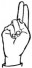 На ћирилици написано ПЕРИША РАЈИЋ састоји се из 11 слова [?]. Исписано ћириличном једноручном азбуком за глувонеме: